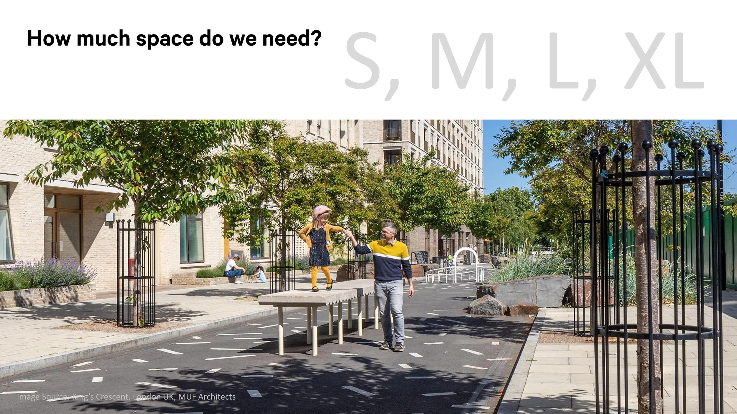 To do this, we need to optimize every street, carefully defining how much space is needed for traffic. If we focus on safety, accessibility, and efficient traffic flow, we'll find that most of the "road" width on our streets will shrink. The excess space can then be used to support a huge range of public activities.