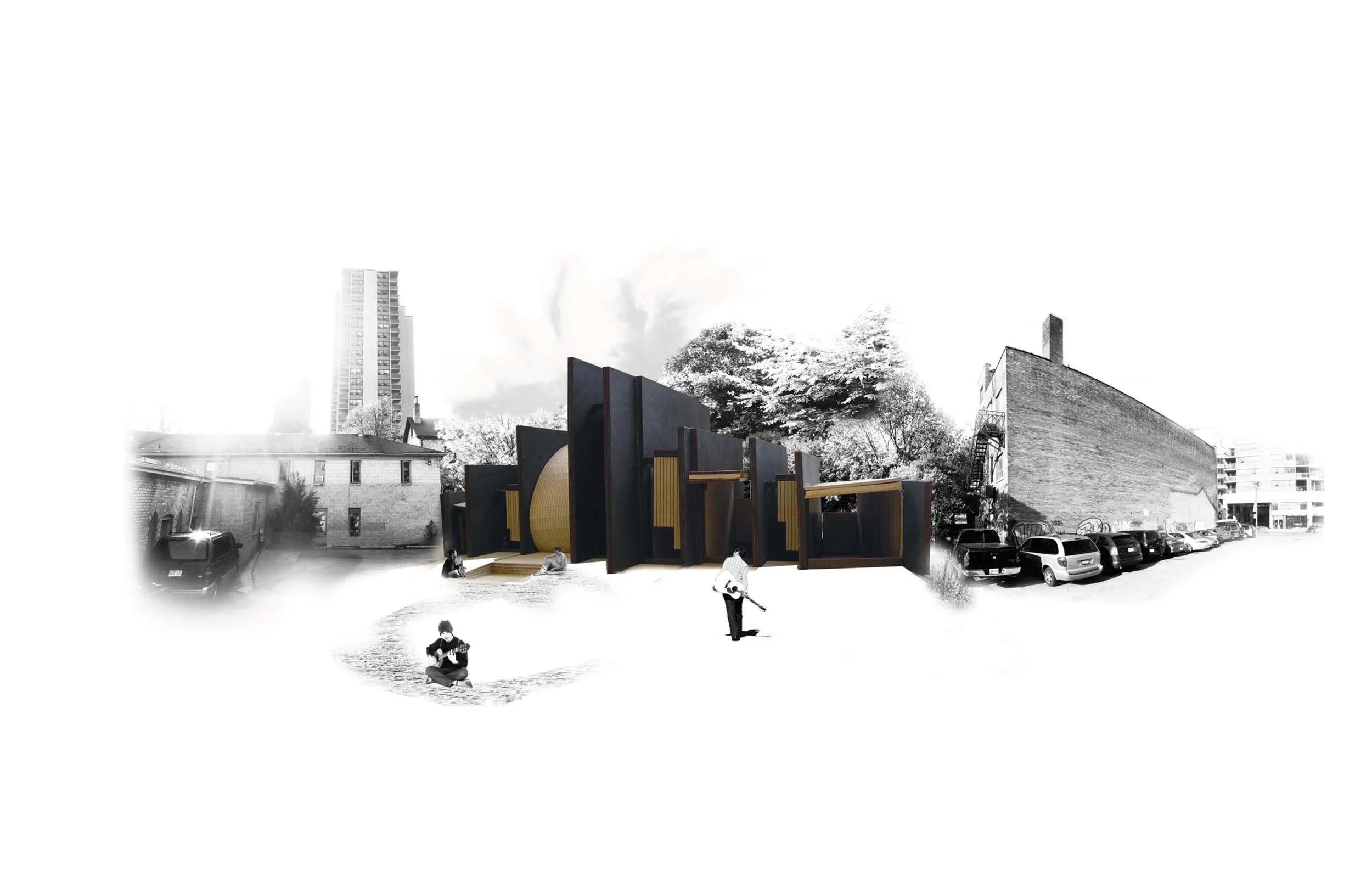 This project manipulates the qualities of space through material, proportion, and isolation, to create different sound environments. These manipulations allow the building’s rooms to enhance or distort the sounds produced by musical instruments played within them. Musicians, or anyone who enters these rooms, will become aware of the impact of architecture on sound and music, and challenge their assumptions about how music is made and experienced.