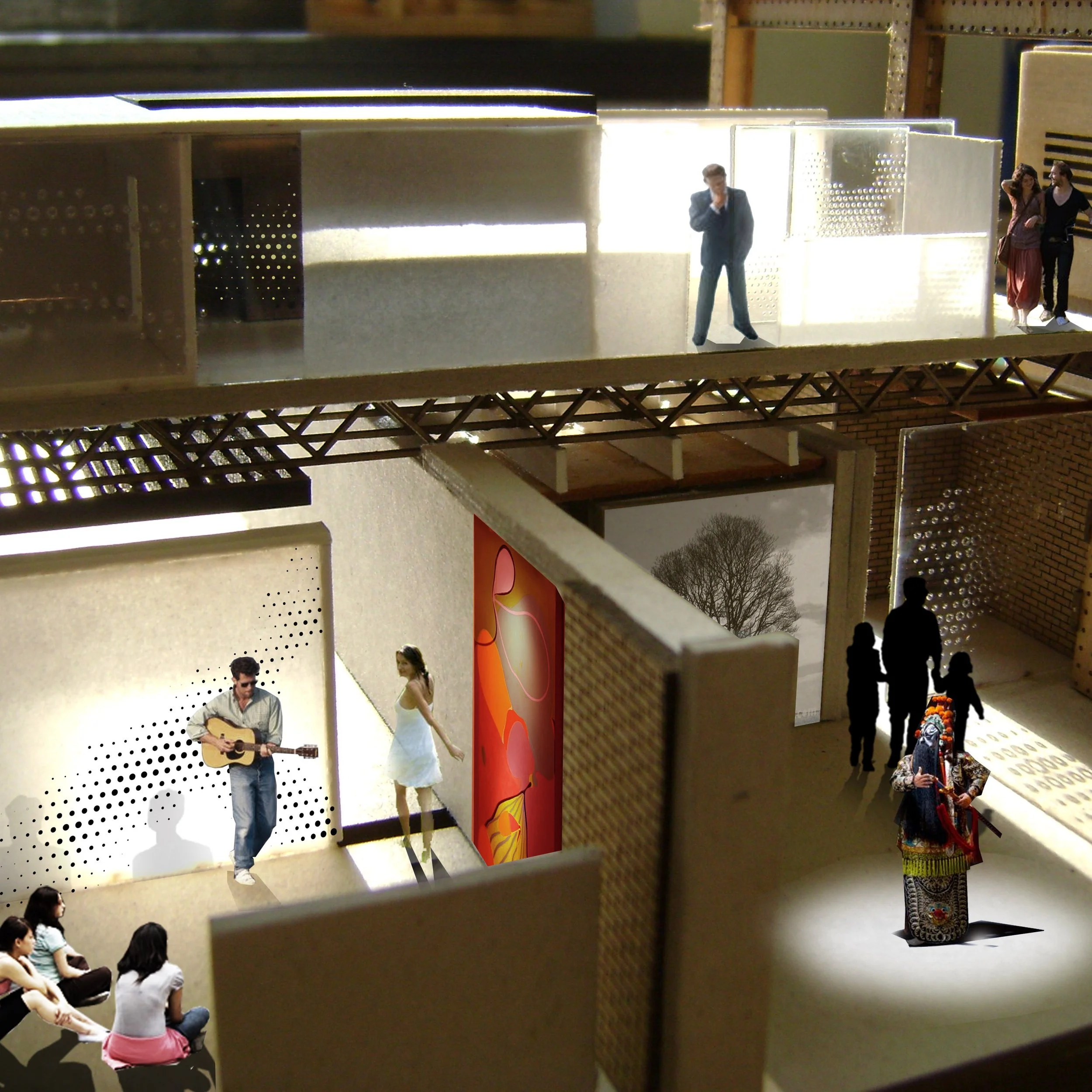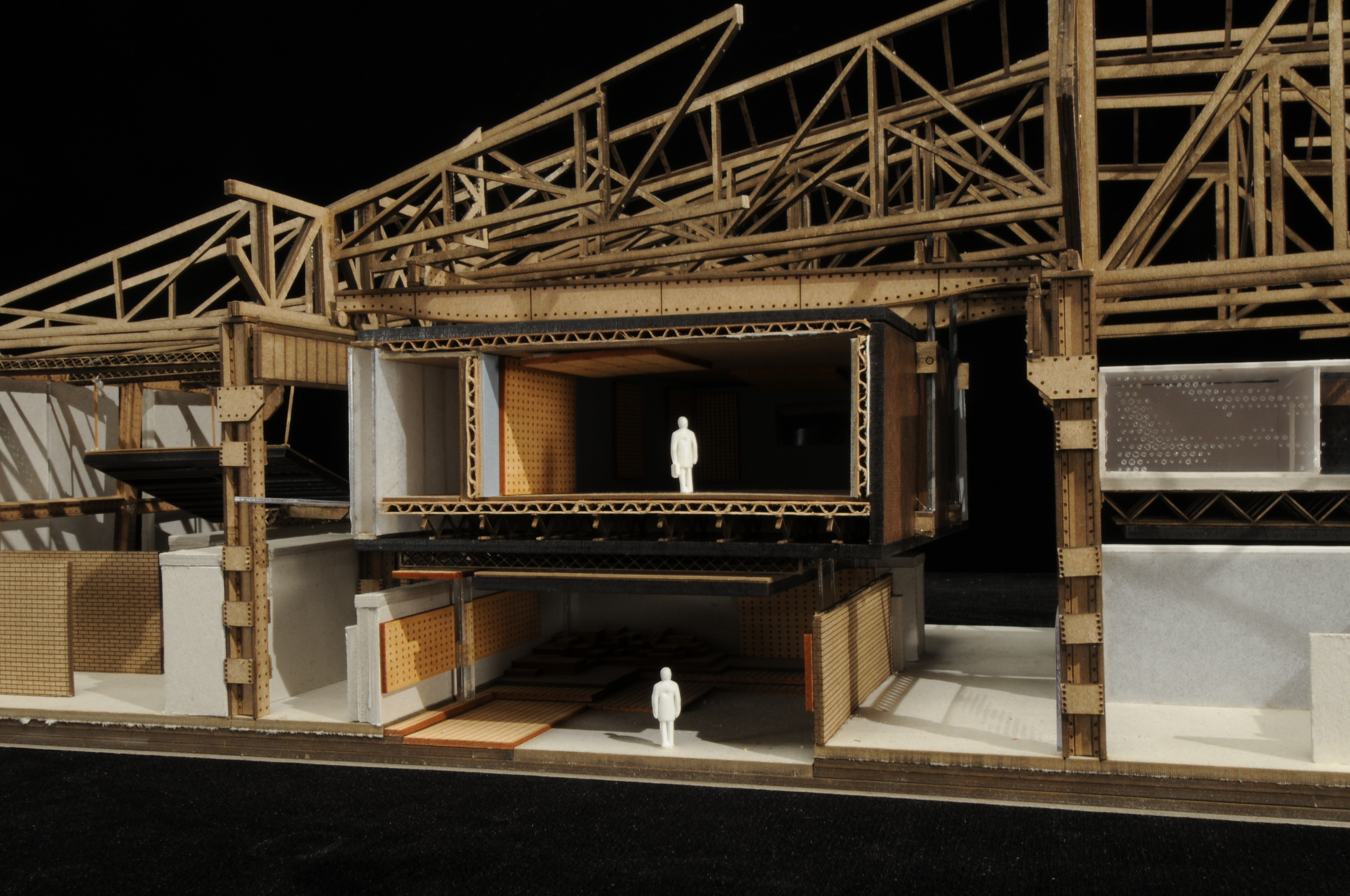 A continuous interior-exterior landscape composed of fragments of the original facilities enhanced with a diverse range of visual, acoustic, lighting, infrastructure, as well as adaptable seating and stage elements. The result is an interpretable framework that supports cultural interpretation by students, curators, actors, and the public.